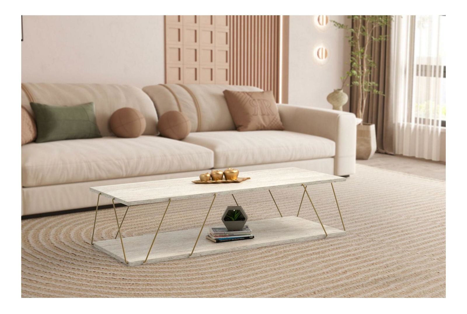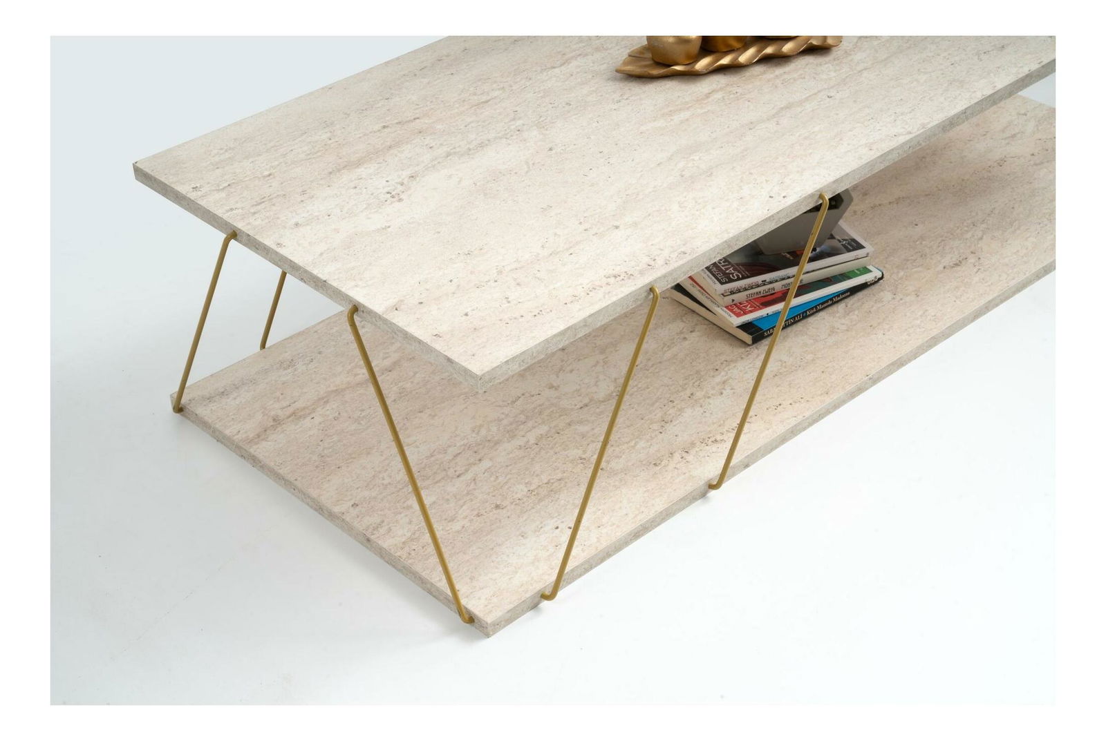 Konferenční stolek Liana (zlatá + mramor světlý)