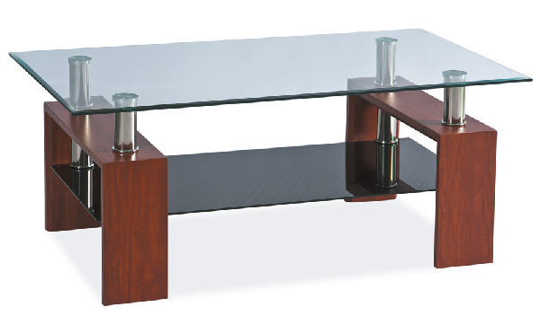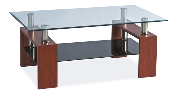Lisa II je zajímavý konferenční stolek, který Vám nabídne jednoduchý no efektní design, který se hodí do jakékoliv obývacího pokoje. Stolek má dvě části, kde vrchní část je z průhledného skla a spodní část z černého skla plní odkládací funkci. Výška stolku je 55 cm. Nohy stolku jsou ze dřeva v třešňovém barevném provedení.