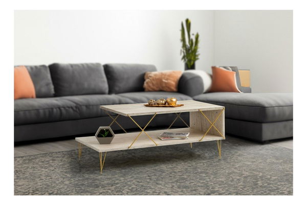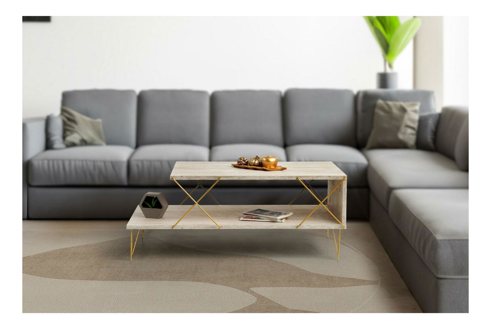 Konferenční stolek Loira (zlatá + mramor světlý)