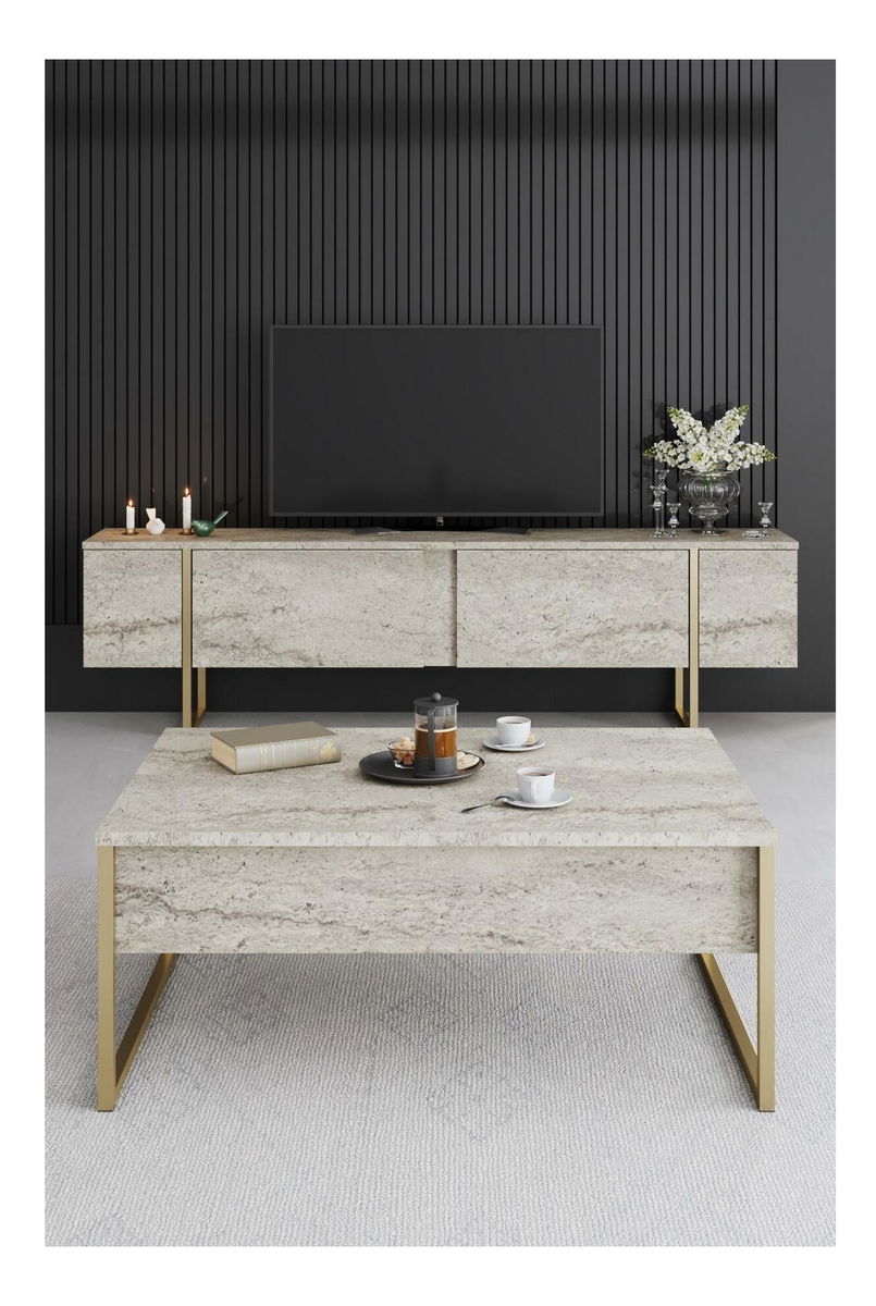 Konferenční stolek Luna 1 (travertin + zlatá)