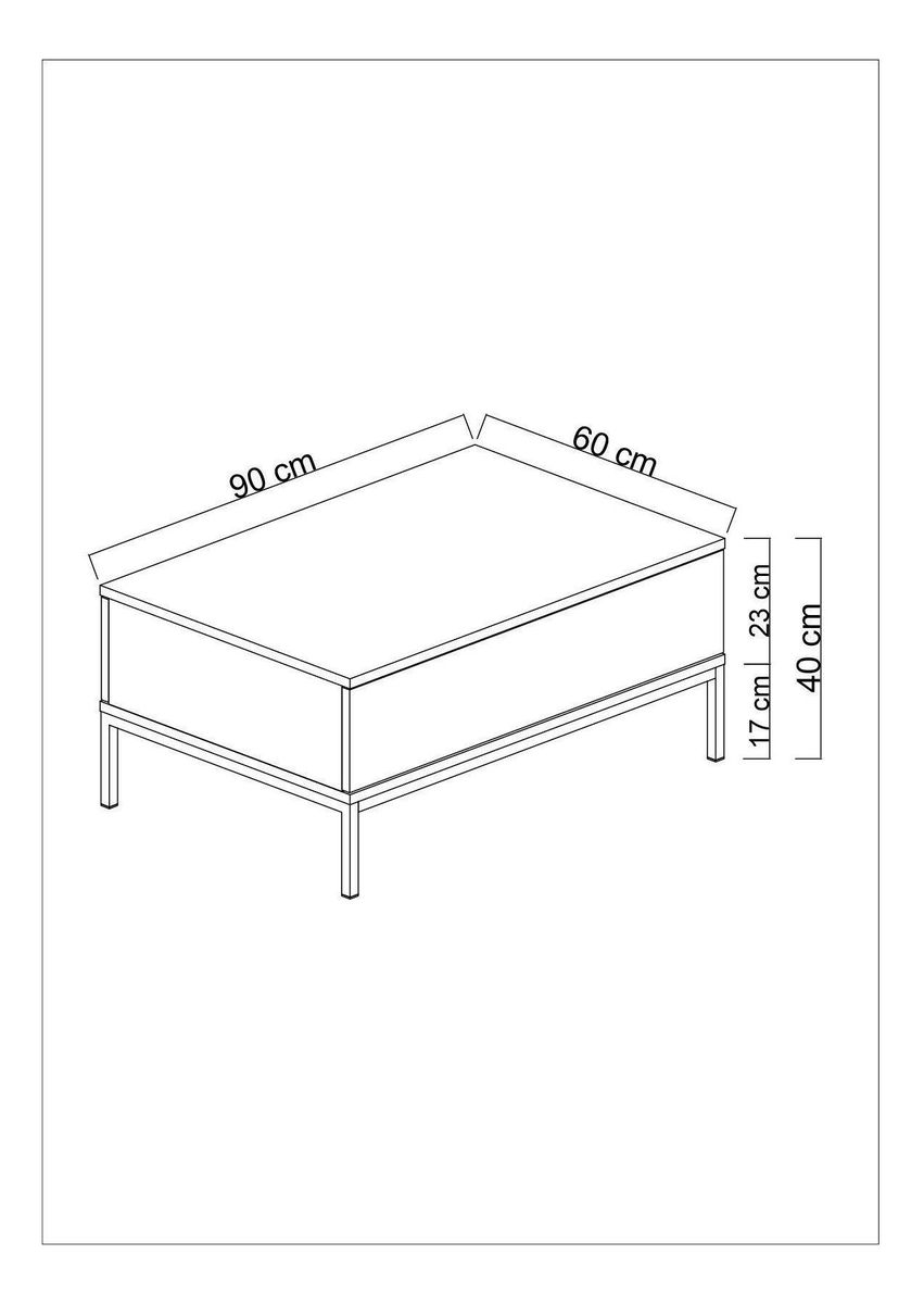 tloušťka: 18 mm, kovové nohy, šířka: 90 cm, výška: 40 cm, hloubka: 60 cm