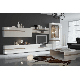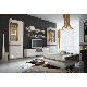 Luxusní sektorová sestava vhodná na zařízení obývacích pokojů. Je vyrobena z laminované DTD, která je odolná vůči poškrábání, vhlkosti a vysoké teplotě. Díky těmto vlastnostem prodlouží životnost Vašeho nábytku. Barevné provedení je bílá v kombinaci s barvou dřeva dub sonoma truflový. Přední části jsou vyrobeny z MDF bílé barvy s extra vysokým leskem HG. Příjemný německý design s elegantními hnědými doplňky. Dvířka jednotlivých skříněk mají moderní zaoblené hrany. Možnost dokoupení LED osvětlení do prosklených částí vitrín.