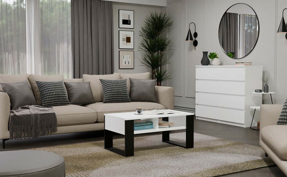 ZobrazitKonferenční stolek Maduro 3 v elegantní kombinaci bílé a černé barvy je ideálním doplňkem do moderního interiéru. Jeho robustní konstrukce z laminované dřevotřísky zaručuje vysokou odolnost vůči poškrábání, což prodlužuje životnost nábytku. S praktickými dvěma úložnými poličkami pod vrchní deskou nabízí dostatek prostoru pro uskladnění knih či dekorací. Stolek se jednoduše montuje a jeho minimalistický design skvěle zapadne do obývacího pokoje, čímž vytvoří útulnou atmosféru.