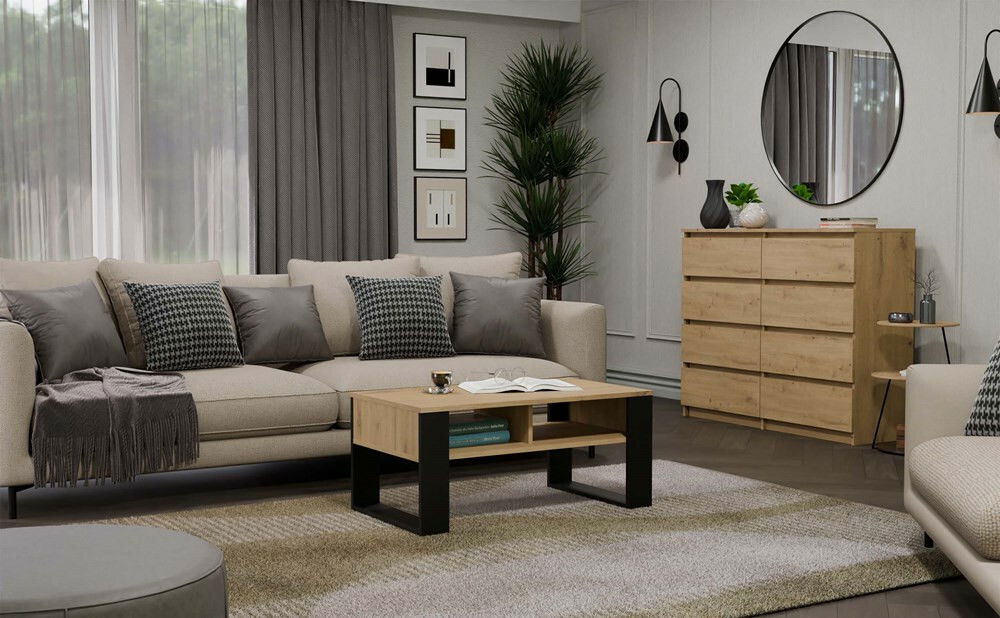 ZobrazitKonferenční stolek Maduro 3 v elegantní kombinaci dub artisan a černé barvy je ideálním doplňkem do vašeho obývacího prostoru. Jeho moderní design a praktické vlastnosti, jako jsou dvě prostorné poličky pod deskou, zaručují nejen estetický zážitek, ale také maximální funkčnost. Stolek je vyroben z kvalitní laminované dřevotřísky, což zvyšuje jeho odolnost vůči poškrábání a zaručuje dlouhou životnost. S jednoduchým montážním procesem a jasnými pokyny se stane skvělým řešením pro každou domácnost. Tento nábytek je opravdu nezbytným prvkem pro váš domov.