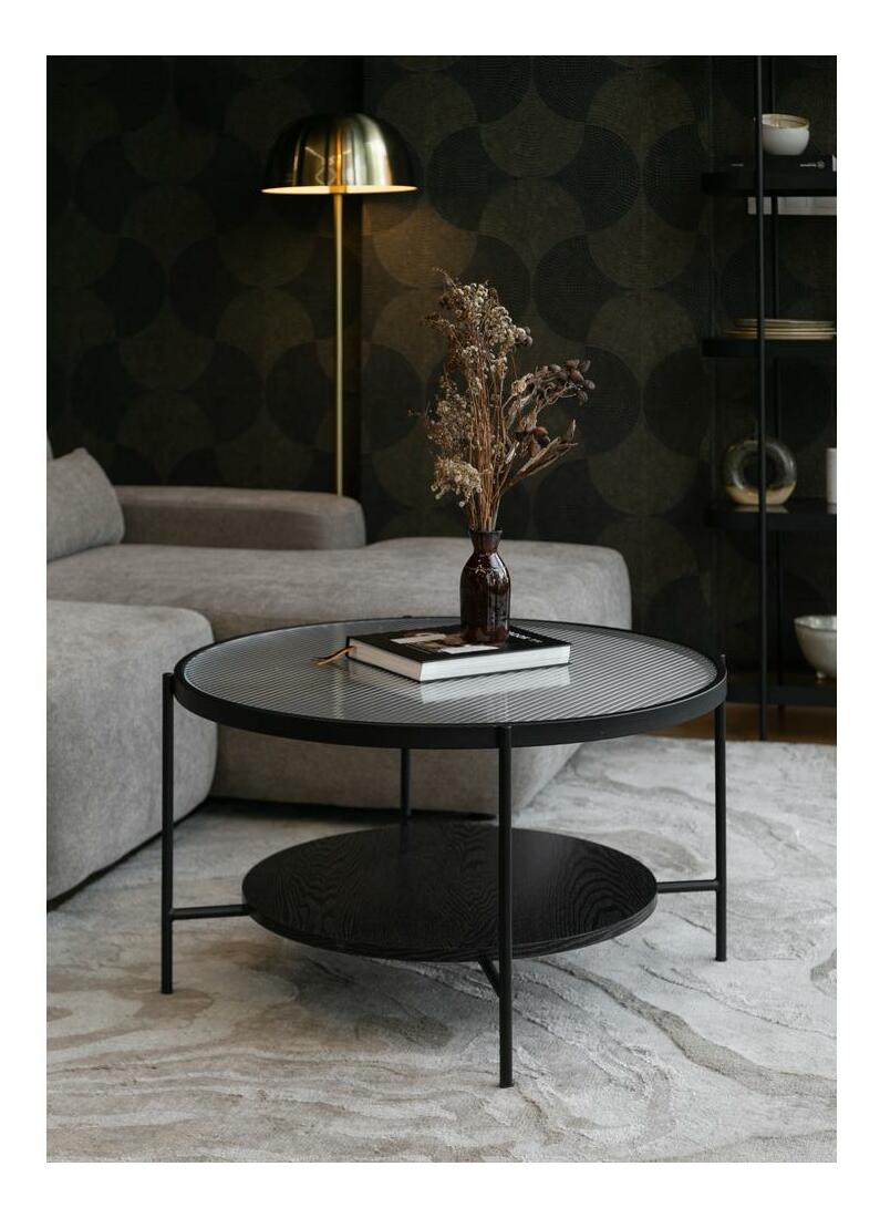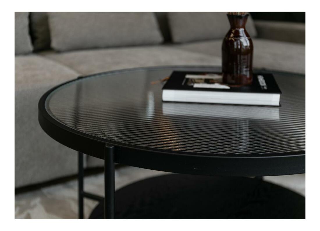 ZobrazitChcete osvěžit vzhled vašeho obývacího pokoje? Poznejte Maleth Stůl Maleth přinese do vašeho prostoru nejen modernost, ale také eleganci. Drážkované sklo, ze kterého je vyrobena stolová deska, je další povrch texturou, která dodává stolu jedinečný vzhled. Je to také praktické řešení, neboť drážkovaná struktura zabraňuje sklouznutí předmětů po pracovní desce. Police pokrytá dýhou poskytne další prostor pro uložení různých předmětů. Stolová deska a police jsou namontovány na kvém rámu s černým práškovým nástřikem. Tato harmonická kombinace materiálů činí stůl nejen jedinečným, ale také odolným a stabilním. Maleth je dokonalým doplňkem do vašeho interiéru Detaily produktu: rozměry: 80 x 45 cm, materiály: kov s práškovým nástřikem, rýhované sklo, MDF deska pokrytá dýhou, stolová deska je vyrobena z rýhovaného skla - to jsou svislé drážky, které dávají povrchu! struktura, barva: černá, transparentní.