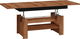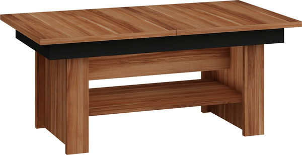 Zajímavý kus nábytku. Konferenční stolek s funkcí zvedání a rozkládání horní desky. Horní deska se zvedá pomocí kliky. Standardní šířka horní desky je 125 cm, po rozložení je široká 170 cm. Základní výška stolku je 53 cm. Po zvednutí horní desky o 16 cm se dostaneme k výšce 69 cm, což je velmi praktické při společenských událostech, kde stolek slouží jako odkládací místo. Dodávané provedení je švestka v kombinaci s černým vodorovným pásem umístěným po obvodu pod horní deskou. Pod horní deskou je umístěna polička na odkládání.