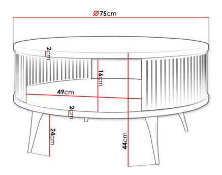 Hledáte funkční kus nábytku do obývacího pokoje, který bude zároveň netradiční dekorací? Seznamte se s kulatým konferenčním stolkem Mezanoa! Množství barevných variant vám umožní sladit jej se stávajícím zařízením. Proč je tak výjimečný? Jeho konstrukci tvoří ozdobná vložka, která spojuje horní a dolní prkno a poskytuje další úložný prostor v podobě poličky. Díky této funkci bude vaše sezení přehledné a uklizené. Konferenční stolek na nožičkách se stane skutečnou ozdobou vašeho obývacího pokoje!