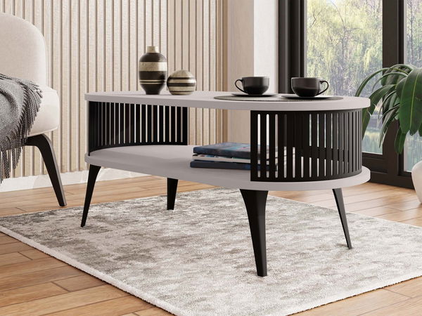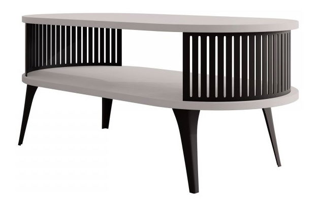 ZobrazitKonferenční stolek je ideální volbou pro ty, kteří hledají pohodlí a styl. Konferenční stolek Mozimo se postará o elegantní a funkční design ve vašem obývacím pokoji. Vyznačuje se zaobleným tvarem a dvouúrovňovou konstrukcí, která poskytuje prostor pro odkládání knih, časopisů nebo dekorací. Výrazným prvkem je prolamovaná černá struktura, která obklopuje prostor mezi deskami. Oválný konferenční stolek Mozimo má štíhlé kovové nohy, které mu dodávají moderní charakter a stabilitu. Stolová deska je dostupná v 6 zajímavých vzorech, což umožňuje sladit nábytek do různých interiérů a dekorativních stylů. Konferenční stolek je ideální jak do minimalistických obýváků, tak i do těch s eklektičtějším dekorem. Rozměry: šířka: 100 cm, výška: 44 cm, hloubka: 50 cm Provedení: laminovaná dřevotřísková deska tloušťky 18 mm, ABS hrana silná 2 mm, střední část, spojující horní a dolní desku, je vyrobena z oceli s práškovým nástřikem, nohy vyrobeno 24 měsíců