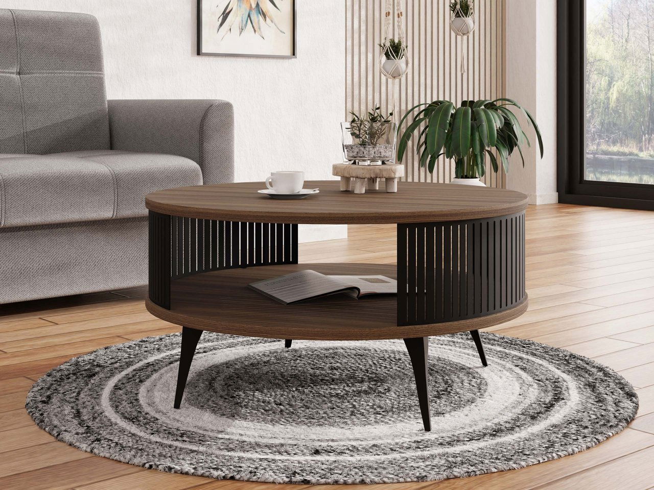 Konferenční stolek je ideální volbou pro ty, kteří hledají pohodlí a styl. Hledáte funkční kus nábytku do obývacího pokoje, který bude zároveň netradiční dekorací? Seznamte se s kulatým konferenčním stolkem Mozimo! Množství barevných variant vám umožní sladit jej se stávajícím zařízením. Proč je tak výjimečný? Jeho konstrukci tvoří ozdobná vložka, která spojuje horní a dolní prkno a poskytuje další úložný prostor v podobě poličky. Díky této funkci bude vaše sezení přehledné a uklizené. Konferenční stolek na nožičkách se stane skutečnou ozdobou vašeho obývacího pokoje! Rozměry: šířka: 75 cm, výška: 44 cm hloubka: 75 cm Provedení: Tloušťka laminované dřevotřísky 18 mm, ABS hrany o tloušťce 2 mm, nohy z oceli, práškově lakované černou barvou střední část, spojující horní a spodní desku, je vyrobena