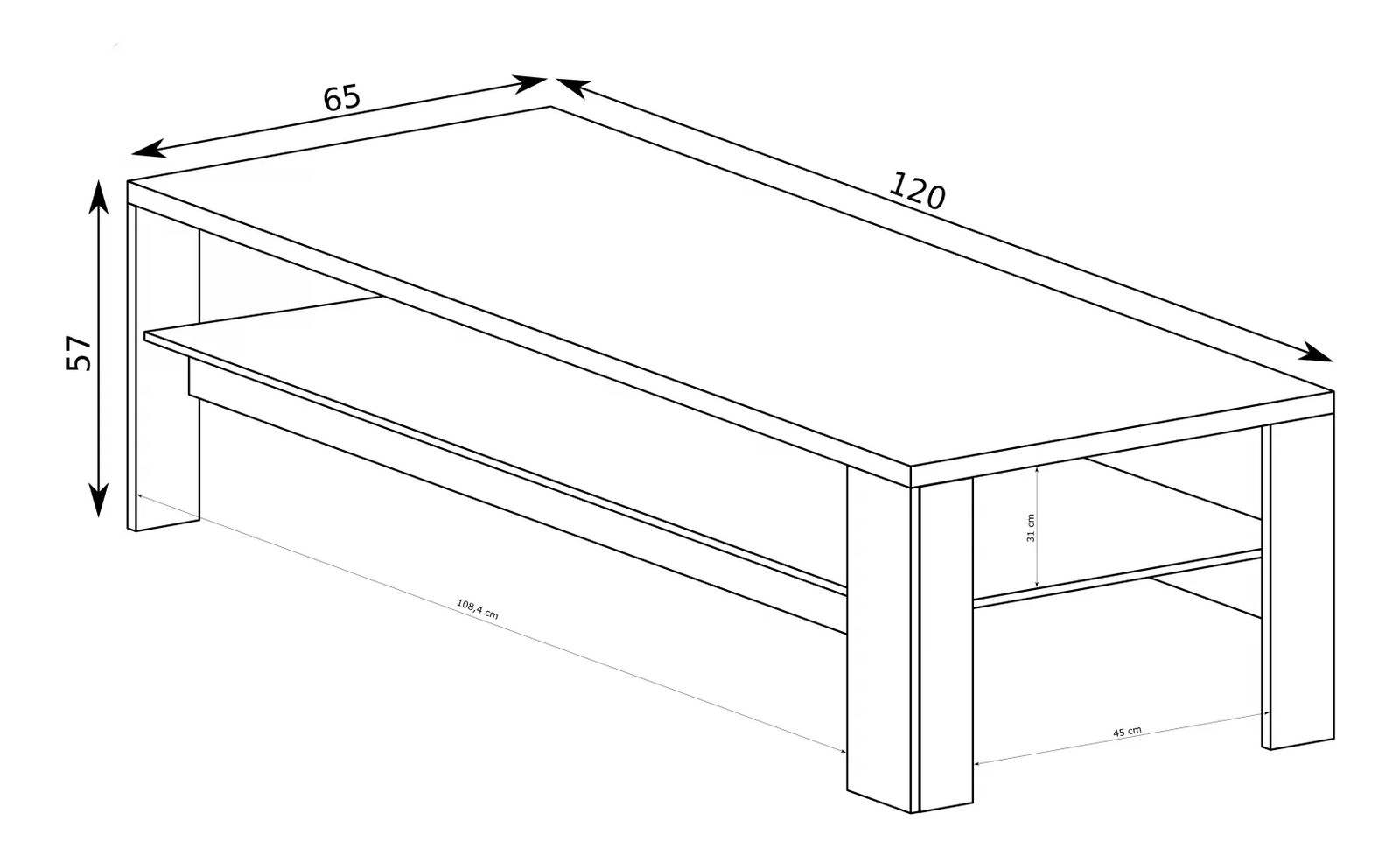 Jednoduchý, světlý konferenční stolek, který se bude skvěle hodit do obývacího pokoje, kde se pohodlně usadíte na vaší oblíbené pohovce nebo koutě, odpočíváte a máte po ruce místo pro odložení šálku kávy nebo čaje. Stolek je vyroben z velmi odolných materiálů. Na poličku můžeme odložit knihy nebo časopisy a jiné méně potřebné věci.