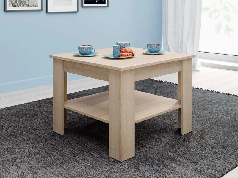 Máte ve svém obýváku nebo kanceláři málo volného prostoru? Vyřešit odkládací prostor před sedačkou vám pomůže mini konferenční stolek Minky. Základní deska má tvar čtverce a jeho užitečnost zvyšuje také spodní police. Stolek do obývacího pokoje je vyroben z odolných laminovaných dřevotřískových desek (LDTD), jejichž vlastnosti umožní využívat nábytek po dlouhá léta v perfektním stavu. Pro jejich snadnou údržbu vám postačí pouze látkový hadřík a neagresivní čistící prostředek.