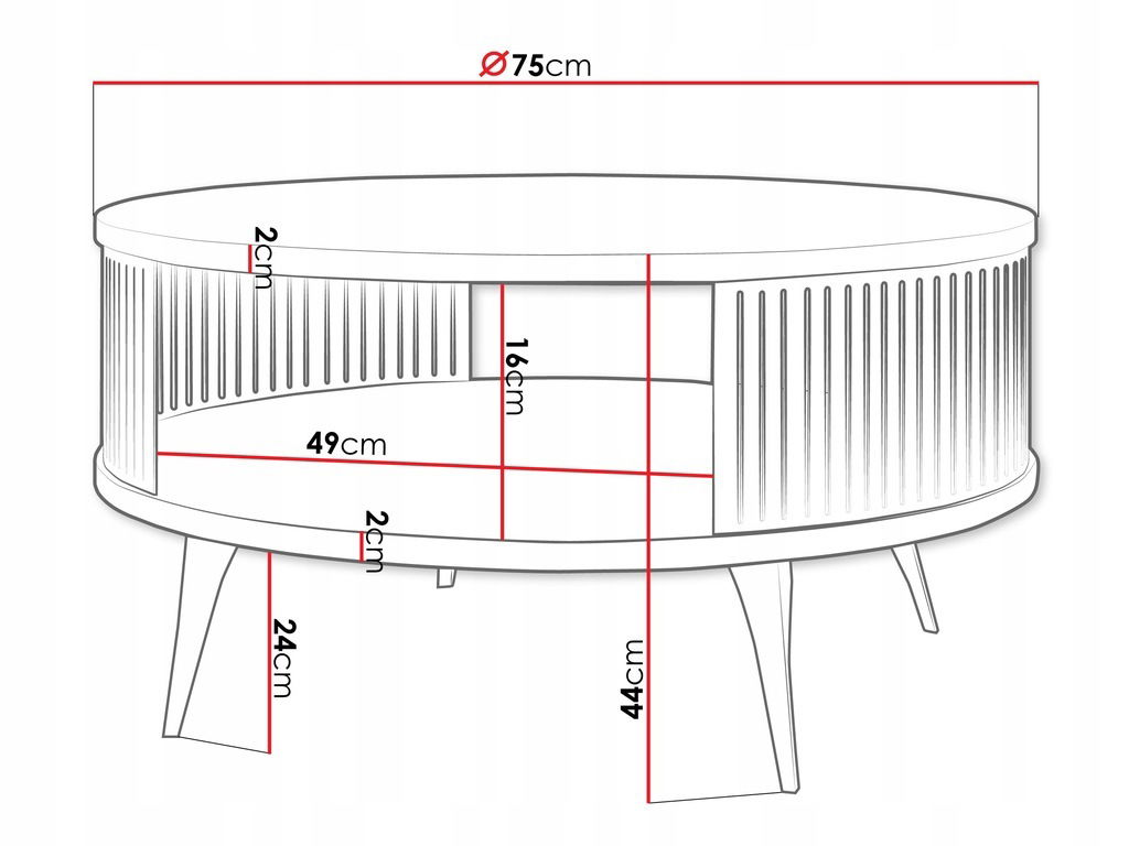 Konferenční stolek Mozimo je ideální volbou pro ty, kteří hledají pohodlí a styl. Hledáte funkční kus nábytku do obývacího pokoje, který bude zároveň netradiční dekorací? Seznamte se s kulatým konferenčním stolkem Mozimo! Množství barevných variant vám umožní sladit jej se stávajícím zařízením. Proč je tak výjimečný? Jeho konstrukci tvoří ozdobná vložka, která spojuje horní a dolní prkno a poskytuje další úložný prostor v podobě poličky. Díky této funkci bude vaše sezení přehledné a uklizené. Konferenční stolek na nožičkách se stane skutečnou ozdobou vašeho obývacího pokoje! Rozměry: šířka: 75 cm, výška: 44 cm hloubka: 75 cm Provedení: Tloušťka laminované dřevotřísky 18 mm, ABS hrany o tloušťce 2 mm, nohy z oceli, práškově lakované černou barvou střední část, spojující horní a spodní desku, je vyrobena