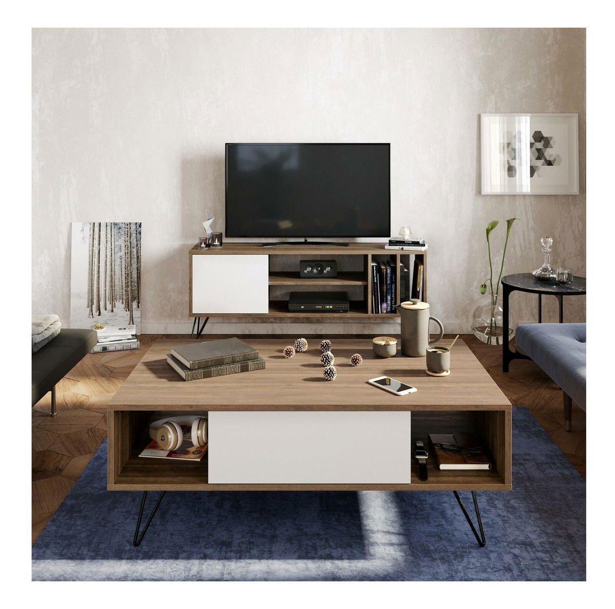 Konferenční stolek Mistique (ořech + bílá)