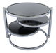 Kulatý konferenční stolek zaujme svým designem a funkčností. Pokud je potřeba využít stolek ve větším prostoru, stačí pouze pootočit dvě spodní úrovně a rázem dostáváte prostorný stolek s dostatečným odkládacím prostorem. Černé sklo doplňuje chromová konstrukce.