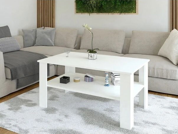 Jednoduchý konferenční stolek obdélníkového tvaru se díky své univerzálnosti bude hodit do každého obývacího pokoje. Navíc disponuje odkládací poličkou, čímž získáte více úložného prostoru. Stolek do obývacího pokoje je vyroben z odolných laminovaných dřevotřískových desek (LDTD), jejichž vlastnosti umožní využívat nábytek po dlouhá léta v perfektním stavu. Pro jejich snadnou údržbu vám postačí pouze látkový hadřík a neagresivní čistící prostředek.