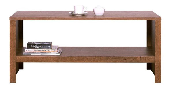 Jednoduchý konferenční stolek s jednou poličkou je praktickým doplňkem k ostatnímu nábytku. Barevné provedení dub lefkas má specifickou kresbu a dodává až rustikální výraz masivního neopracovaného dřeva, pokud to tak můžeme vůbec říct.