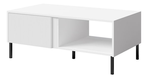 ZobrazitTento konferenční stolek je ideálním řešením pro každý obývací prostor nabízející kombinaci stylu a funkcionalitu. Jeho korpus a přední strana jsou vyrobeny z odolného laminátu, který je doplněn o prvky z MDF, zajišťující tak vysokou odolnost a estetický vzhled. Kovové nohy o výšce 15 cm nejen zajišťují stabilní podporu, ale také usnadňují čištění prostoru pod stolem.