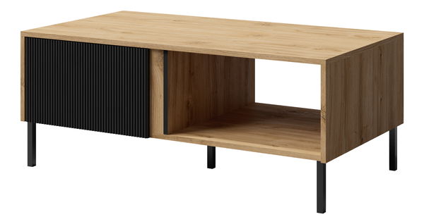 ZobrazitTento konferenční stolek je ideálním řešením pro každý obývací prostor nabízející kombinaci stylu a funkcionalitu. Jeho korpus a přední strana jsou vyrobeny z odolného laminátu, který je doplněn o prvky z MDF, zajišťující tak vysokou odolnost a estetický vzhled. Kovové nohy o výšce 15 cm nejen zajišťují stabilní podporu, ale také usnadňují čištění prostoru pod stolem.
