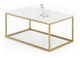 ZobrazitKonferenční stolek - Namira je stylovým a praktickým doplňkem vašeho interiéru. S výškou 43 cm, šířkou 100 cm a hloubkou 60 cm je dostatečně velký pro různá použití. Jeho barevná kombinace zlatá + bílá přidává eleganci a vkus do každé místnosti. Stolek je vyroben z kvalitních materiálů, což zaručuje jeho pevnost a odolnost. Jednoduchý, ale sofistikovaný design stolku Namira je skvělým společníkem při relaxaci, příjemných rozhovorech či konferencích. Získejte si tento úžasný konferenční stolek a dopřejte si komfort a styl ve vašem domově.