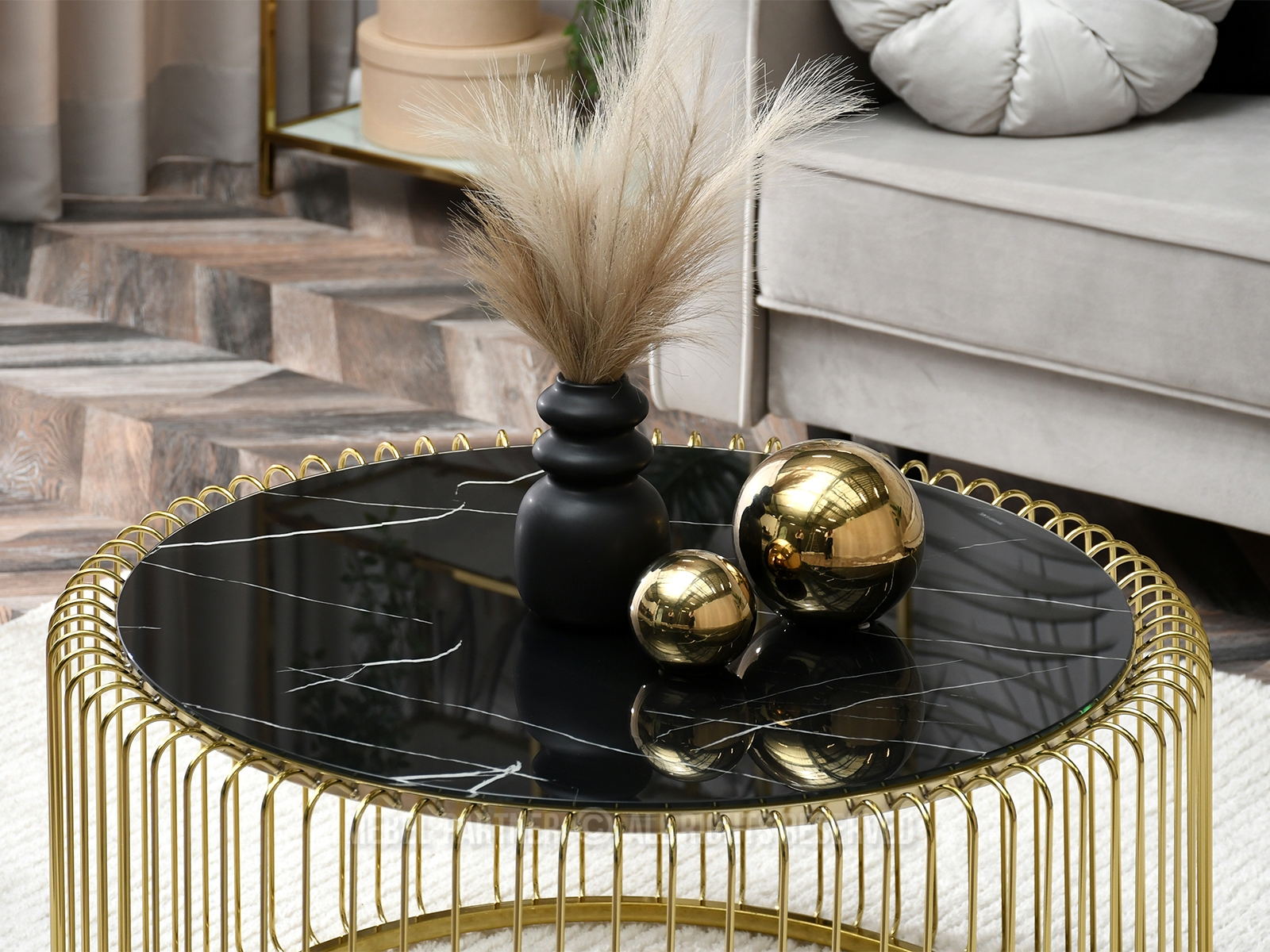 Konferenční stolek Nils (mramor + zlatá)