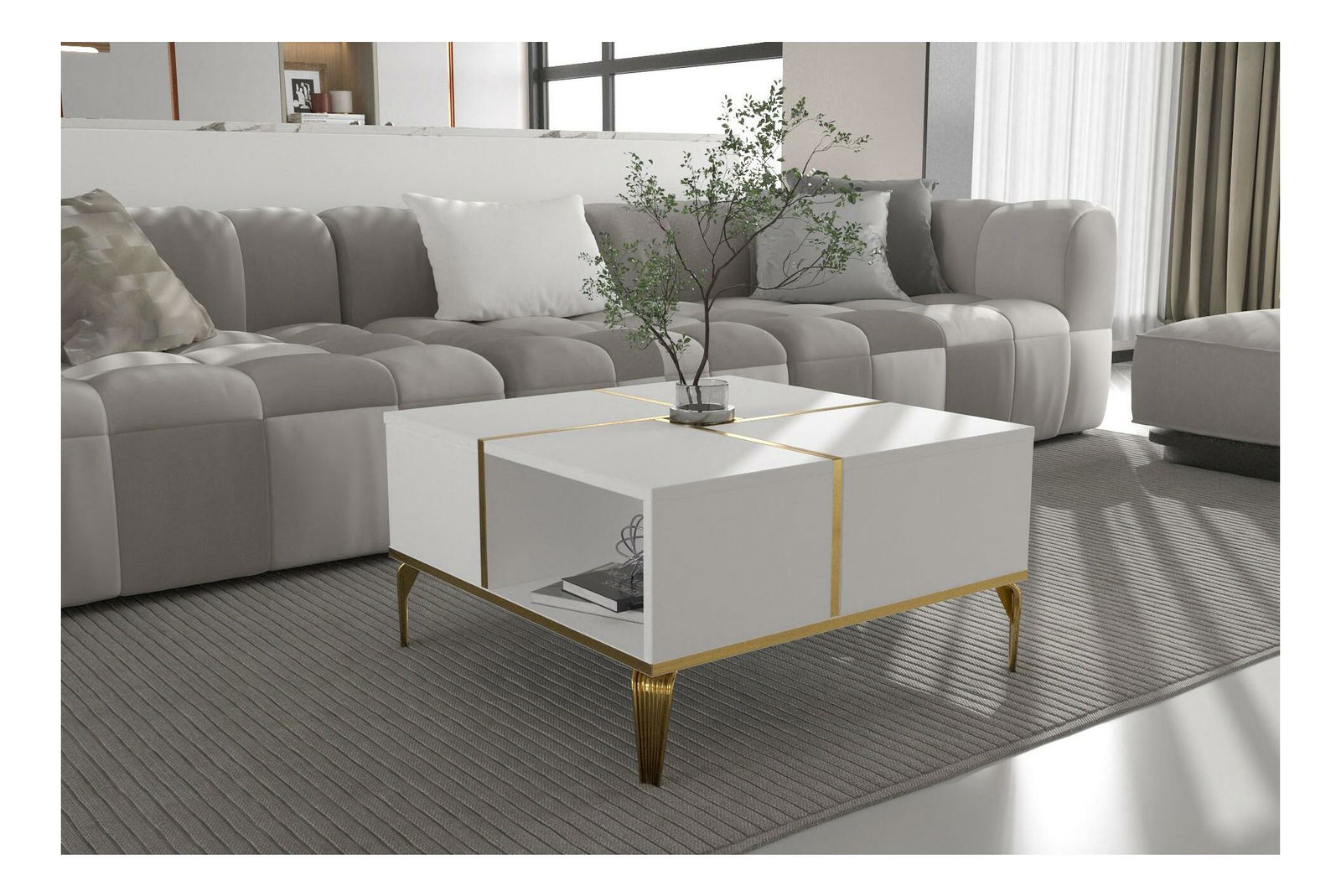 Konferenční stolek Nirvy (bílá + zlatá) *výprodej