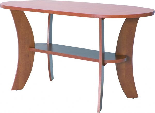 Oválný konferenční stolek s poličkou v barvě ořechu nebo olše je vhodný jako doplněk do obývacího pokoje, ložnice nebo pracovny.