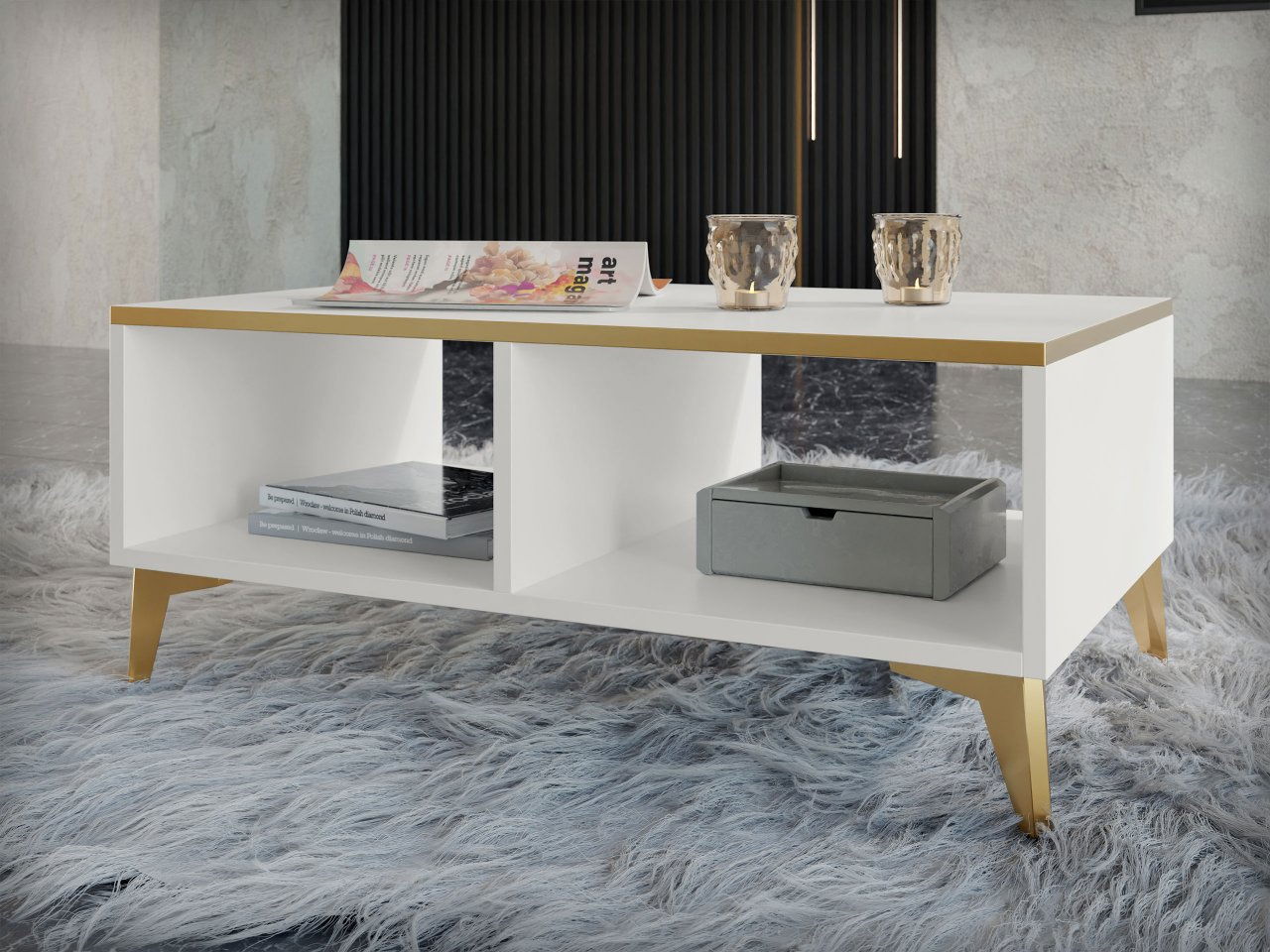 Konferenční stolek Opuncie (bílá + bílá lesklá + zlatá)