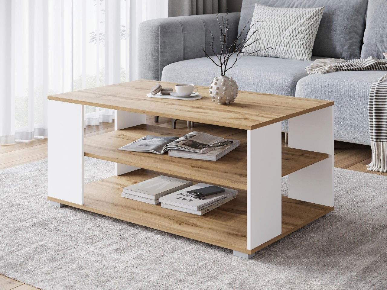 ZobrazitKonferenční stolek je ideální volbou pro ty, kteří hledají pohodlí a styl. Objevte potenciál naší další nabídky. Konferenční stolek Pafgran I S01 nabízí stylovou odkládací základnu. Dvě praktické police vám umožní umístit na ně knihy, noviny nebo jiné předměty. Obdélníkový vrch je místem pro drobné dekorace, šálek aromatické kávy nebo talíř s občerstvením. Obdélníkový konferenční stolek je skvělým společníkem k sedačce a rohové sedačce. Dokonale zapadne do moderních aranžmá. Dobře sluší také ve skandinávském stylu. Tento malý, ale praktický kus nábytku se bude hodit zejména do obýváku. Rozměry: šířka: 100 cm, výška: 45 cm, hloubka: 60 cm Provedení: 15 mm silná laminovaná deska, ABS hrana, nohy: plast v barvě hliníku Záruka: 24 měsíců