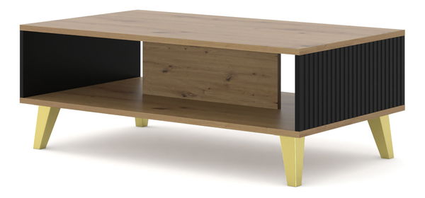 Konferenční stolek PB Rowanna (dub artisan + černá + zlatá)