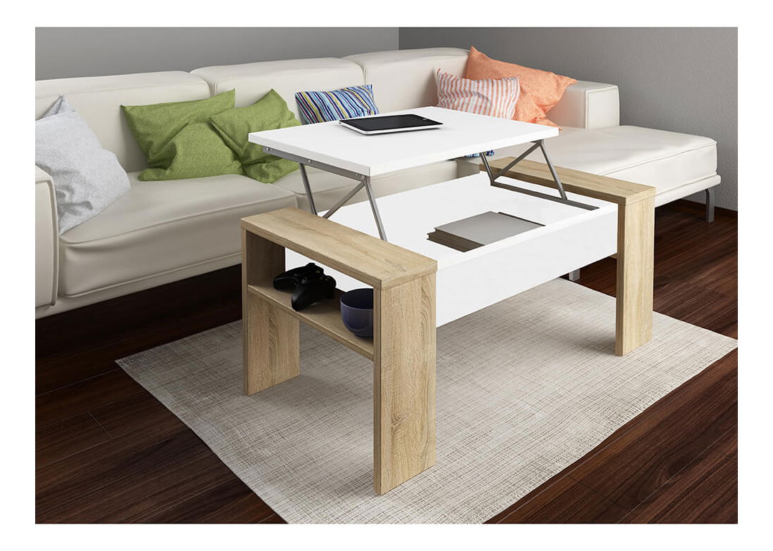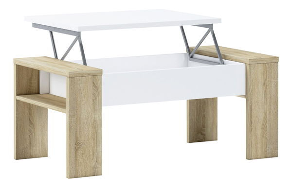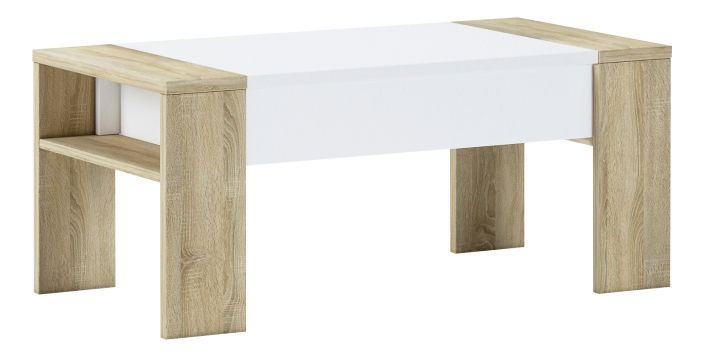 Na designu záleží. Zakomponujte do svého interiéru špetku netradičnosti a Rozveselte prostor konferenčním stolkem . Vyroben je z DTD laminované v nestárnoucí barevné kombinaci dub sonoma a bílá. Na první pohled jednoduchý, a zároveň tak neodolatelný stolek. Pyšní se výškově nastavitelnou vrchní deskou, kterou snadno manuálně zvednete pomocí jednoduchého mechanismu. Na boční straně stolku najdete polici, která rozhodně nezůstane nevyužitá. Precizní design, který v prostoru rozhodně zazáří.