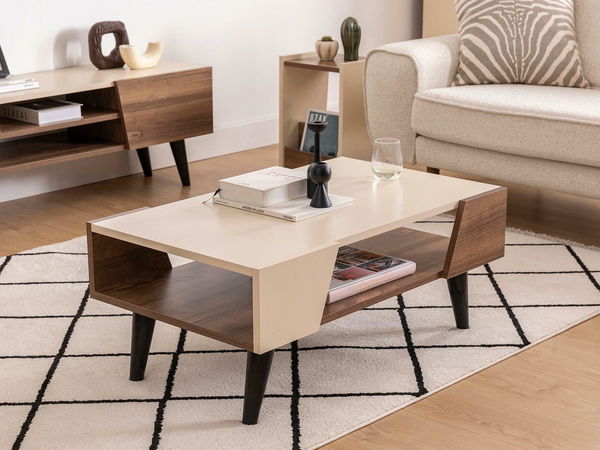 Konferenční stolek Pitudu 2 (ořech + béžová)