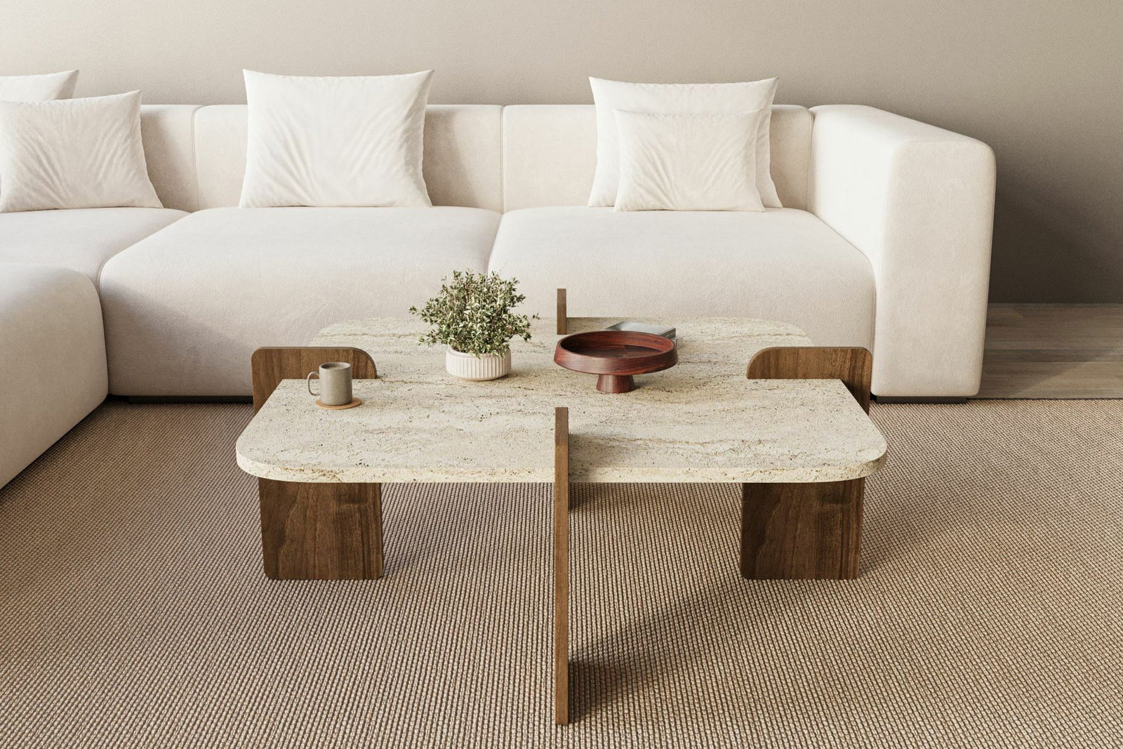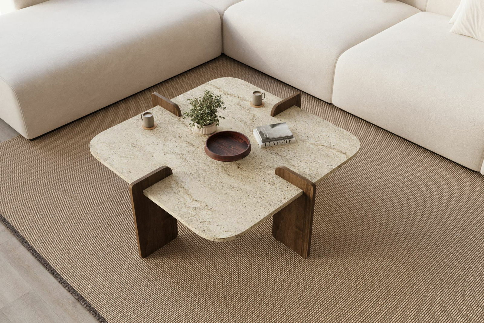 - Konferenční stolek Poalo (travertin + ořech)