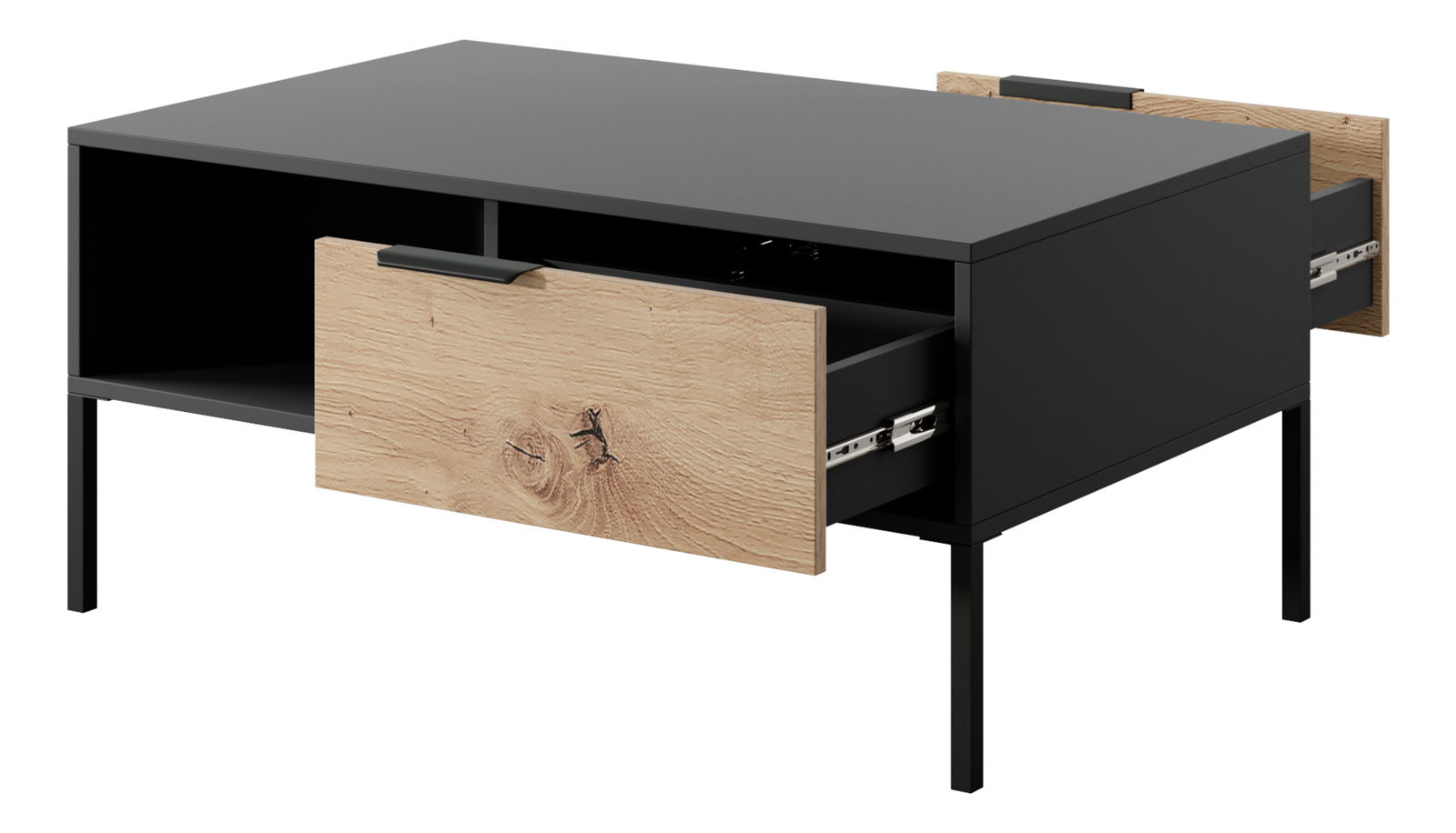 ZobrazitKonferenční stolek - Rastafa 2S je moderním a elegantním doplňkem pro váš obývací prostor. S výškou 44,4 cm, šířkou 96,9 cm a hloubkou 60 cm poskytuje dostatečný prostor pro umístění časopisů, ovladačů a dalších potřeb pro vaše pohodlí. Jeho design kombinuje přírodní dub Artisan s elegantní černou barvou, což dodává stolku stylový a sofistikovaný vzhled. Rastafa 2S je vyroben z kvalitních materiálů, což zaručuje jeho trvanlivost a odolnost. Svou jedinečnou kombinací funkcionality a estetiky je tento konferenční stolek ideálním doplňkem pro každý moderní interiér.