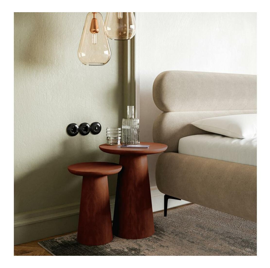 Vysoký stolek je nejen praktickým kusem nábytku, ale také dekorativním prvkem, který dodává interiéru harmonii a klid. Jeho přirozená povrchová úprava a možnost vytvářet kompozice s menší verzí stolku z něj činí všestranný a stylový doplněk do vašeho bytu. Kulatý konferenční stolek je jedinečným kusem nábytku, který zaujme svým minimalistickým designem a přírodním povrchem. Její kulatá deska o průměru 40 cm je vyrobena v přírodních dubových barvách, což jí dodává teplo a útulnost. Je výbornou volbou pro boho, japonské, skandinávské a jiná aranžmá, kde dominuje přirozenost a jednoduchost. Tento stůl je vyroben z kombinace dřeva a dýhovaného prkna, což zaručuje odolnost a estetický vzhled. Díky jednoduchému designu se perfektně hodí k ostatním dekorativním prvkům v místnosti a zároveň přidává funkčnost a charakter. Tabulka vám pomůže vytvořit útulný koutek k odpočinku, ideální místo pro odložení knihy, šálky čaje nebo nějaké místo. krásná váza s květinami Detaily produktu: stůl z dubového dřeva a dýhované desky, přírodní materiál s vysokou životností, odolností proti poškození a krásným vzhledem, tloušťka desky stolu 3 cm, průměr nohy stolu v horní části 15 cm, průměr nohy stolu. u základny: 25 cm, průměr desky 40 cm, barva: přírodní dub.