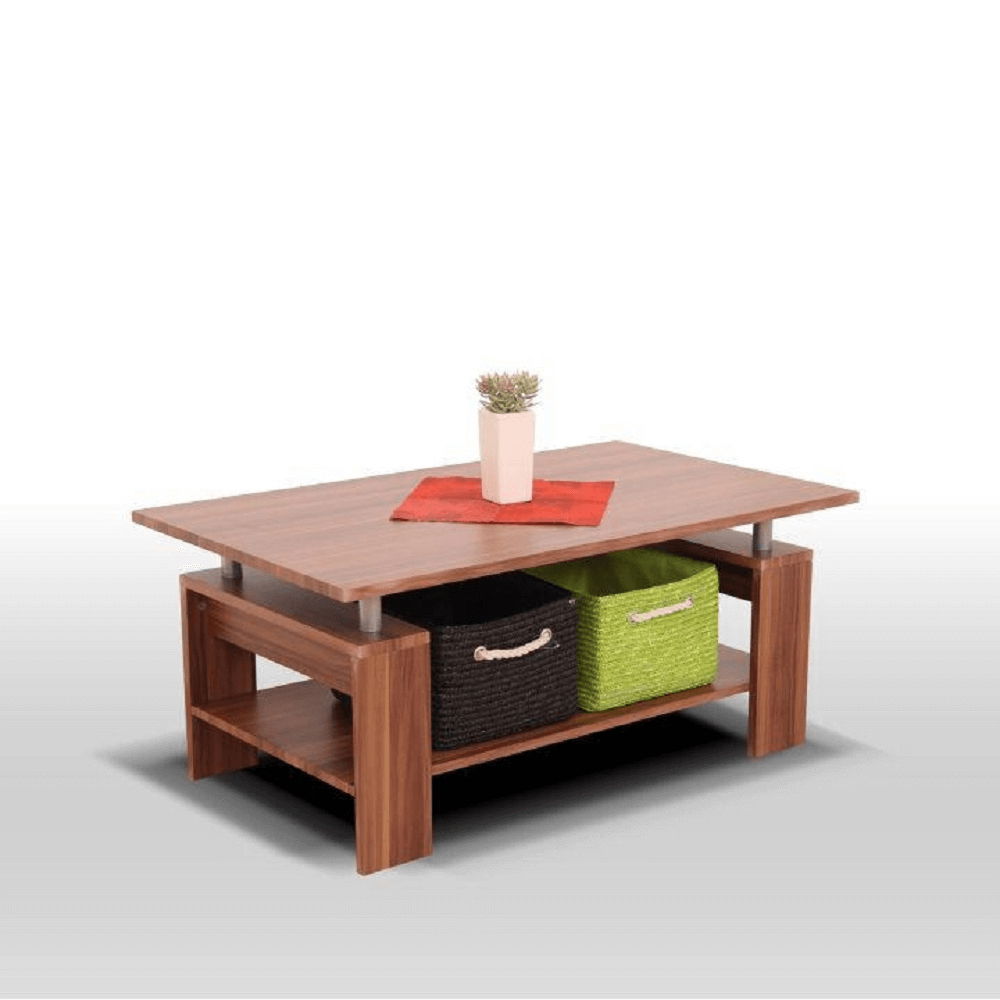 Konferenční stolek Roko je vyroben z kvalitní MDF v barvě ořech světlý. Horní deska je k podstavci přichycena malými kovovými tyčemi ve stříbrné barvě. Je ideálním doplňkem do obývacího pokoje nebo kanceláře.