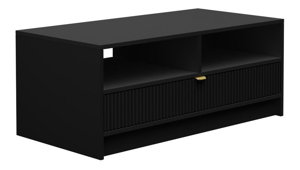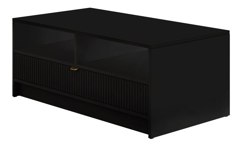 ZobrazitKonferenční stolek je ideální volbou pro ty, kteří hledají pohodlí a styl. Doménou moderního konferenčního stolku se šuplíkem Razimo 1SZ je stylový vzhled. Geometrický tvar v kombinaci s vkusnými dekoracemi vypadá skvěle v každém interiéru. Rýhované vložky jsou zde výhodou – i minimalistickému interiéru dodají nádech avantgardy. Další z předností stolku je jeho funkčnost. Prostorná vrchní deska poskytne dostatek místa na šálky aromatické kávy i na sladké či slané občerstvení. Hned pod ní se nacházejí prostorné poličky – v praxi dobře fungují jako praktické odkládací prostory na dálkové ovladače, sluchátka nebo přečtené noviny. Větší příslušenství najde své místo ve výsuvné zásuvce pod ním. Rozměry: šířka: 100 cm, výška: 40 cm, hloubka: 50 cm Provedení: korpus: 16 mm silná laminovaná deska, čela: 18 mm MDF deska, hrany: ABS a melamin, kuličkové kluzáky, hliníkové úchyty zlaté barvy, nožičky: černé