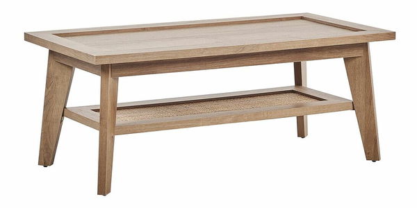 Tento konferenční stolek jistě zaujme pohledy vašich hostů. Je vyroben z odolného a snadno udržovatelného materiálu, díky čemuž bude zkrášlovat váš interiér celé roky. Stolek má také praktickou ratanovou polici, na kterou lze umístit oblíbené dekorace, knihy nebo jiné drobnosti.