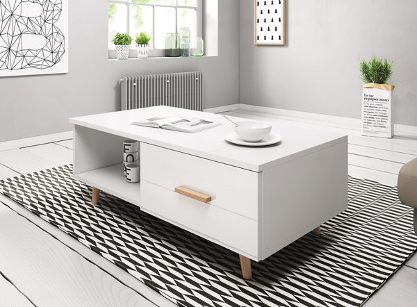 Konferenční stolek Santos 3 (bílý lesk + bílá matná) je moderní a elegantní nábytek, který okamžitě zaujme vaše návštěvníky. S výškou 40 cm a hloubkou 60 cm je dostatečně velký k tomu, aby na něm mohly být umístěny různé předměty. Stolek má bílý lesk a bílou matnou barvu, která vytváří kontrast a dodává mu elegantní vzhled. ABS hrany zaručují, že stolek je odolný vůči poškození. Tloušťka 16 mm lamina zase zajistí, že stolek bude stabilní. Nohy jsou vyrobeny z kvalitního dřeva a úchyt je také dřevěný. Stolek Santos 3 (bílý lesk + bílá matná) je vynikající volbou pro každou moderní domácnost nebo kancelář, která hledá elegantní a praktický stolek.