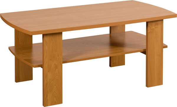 Elegantní konferenční stolek s poličkou na odkládání. Kratší strany horní desky mají oblý tvar.
