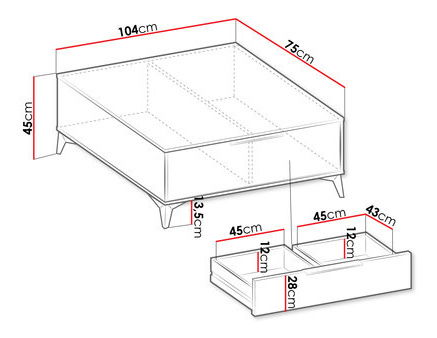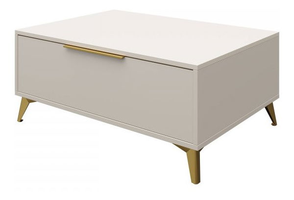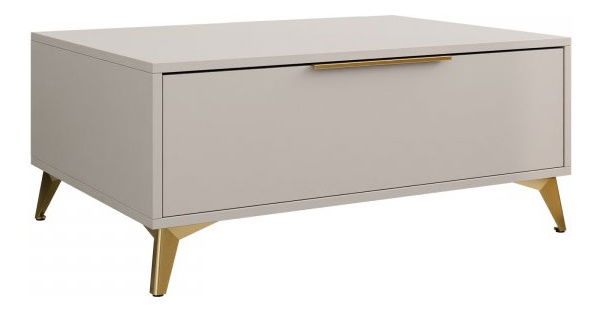 Konferenční stolek je ideální volbou pro ty, kteří hledají pohodlí a styl. Konferenční stolek Siprynt 1SZ se šuplíkem je elegantní nabídka, která doplní relaxační koutek ve vašem obývacím pokoji. Na základě vysokých kovových nohou zlaté barvy působí velice stylově. Prostorná stolová deska nabízí prostor pro stylové dekorace, ale také šálek horké kávy nebo občerstvení. Výsuvná odkládací přihrádka je dobrým místem pro věci, které nepotřebujete vidět, jako jsou kabely, notebook nebo noviny. Konferenční stolek do obývacího pokoje zaujme svým vzhledem a poskytuje funkčnost a každodenní komfort. Rozměry: šířka: 104 cm výška: 45 cm hloubka: 75 cm Provedení: korpus: 16 mm silná laminovaná deska čela: 16 mm silná MDF deska ABS hrana nohy a rukojeti: kov zlaté barvy kuličková vedení