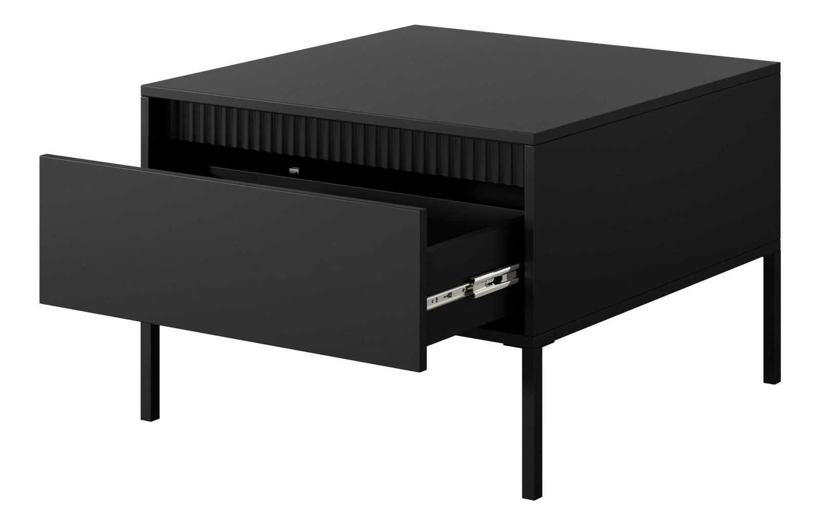 ZobrazitKonferenční stolek Sesen (černá) je stylovým a funkčním doplňkem vašeho obývacího prostoru. Vyrobeno z laminované dřevotřísky s MDF tloušťkou 16 mm po stranách i na přední části, zaručuje pevnost a odolnost. Systém otevírání bez úchytek na bázi stlačení dodává moderní a čistý vzhled. Stolek disponuje 1 dvířky a béžovými kovovými nožičkami, které poskytují stabilitu a elegantní vzhled. Tento konferenční stolek kombinuje estetiku a praktičnost, ideální pro každodenní použití ve vaší domácnosti.