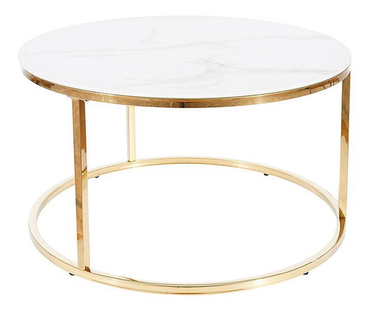 Konferenční stolek Shayna v bílo-zlaté barvě je skvělou volbou pro ty, kteří hledají stylový a elegantní nábytek pro svůj interiér. Výška 45 cm a hloubka 80 cm činí tento stolek ideálním pro prostory s omezeným prostorem, jako jsou například obývací pokoje a salony. + zlatá barva dává stolku moderní vzhled a skvěle se hodí do jakéhokoli interiéru. Stolek Shayna má stabilní zlatý základ s elegantníma nohama, který poskytuje pevnou podporu pro stolovou desku Stolová deska je vyrobena z odolného materiálu a snadno se udržuje v čistotě. Konferenční stolek Shayna je skvělou volbou pro ty, kteří hledají stylový a kvalitní nábytek pro svůj domov. nebo kancelář.