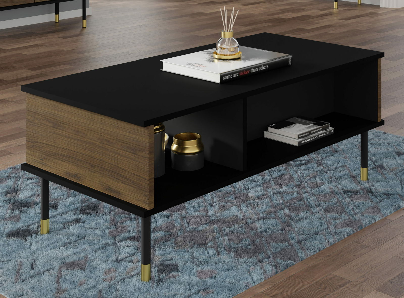 Konferenční stolek Sherlock (černá + dub catania + zlatá)