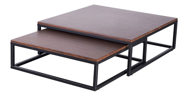 Ne jeden, ale rovnou dva krásné a designově unikátní konferenční stolky. Ušetří Vám místo, protože jeden stolek je menší a dá se zasunout pod větší. Vrchní deska je z fóliované MDF a konstrukce je z kovu.