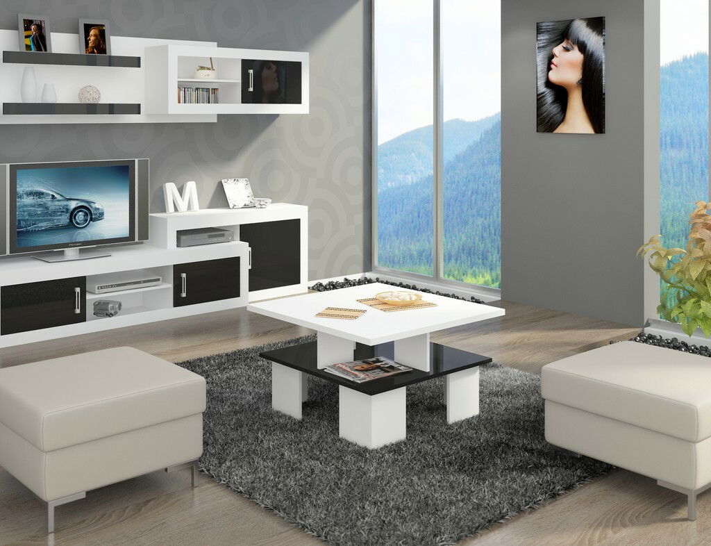 Konferenční stolek Sudbury 1 (bílá + lesk černý)