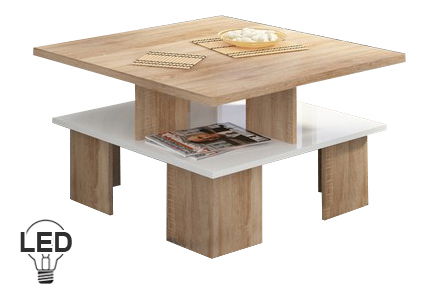 ZobrazitDesignově propracovaný konferenční stolek bude moderním kusem nábytku ve Vaší místnosti. Ale jen v designu nespočívá jeho jedinečnost. Tu ještě ukáže po setmění. Volitelné LED osvětlení vypadá super a dodá nábytku a místnosti úžasný efekt. Je to novinka na trhu s nábytkem. Konferenční stolek má i praktickou poličku, která slouží k odkládání novin, ovladače od TV, prostě věcí, které chcete mít vždy po ruce. Umístit jej můžete do obývacího pokoje, pracovny, kanceláře nebo ve vstupní hale. Barevné provedení je sonoma světlá v kombinaci s bílým vysokým leskem.