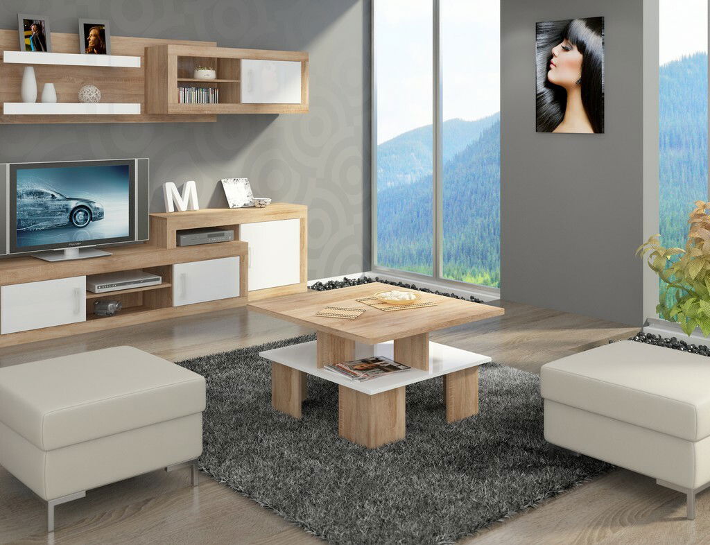 Konferenční stolek Sudbury 1 (sonoma světlá + lesk bílý)