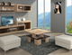 Designově propracovaný konferenční stolek bude moderním kusem nábytku ve Vaší místnosti. Ale jen v designu nespočívá jeho jedinečnost. Tu ještě ukáže po setmění. Volitelné LED osvětlení vypadá super a dodá nábytku a místnosti úžasný efekt. Je to novinka na trhu s nábytkem. Konferenční stolek má i praktickou poličku, která slouží k odkládání novin, ovladače od TV, prostě věcí, které chcete mít vždy po ruce. Umístit jej můžete do obývacího pokoje, pracovny, kanceláře nebo ve vstupní hale. Barevné provedení je sonoma světlá v kombinaci se sonomou tmavou.