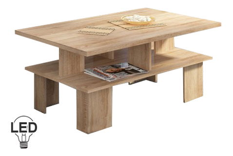 ZobrazitDesignově propracovaný konferenční stolek bude moderním kusem nábytku ve Vaší místnosti. Ale jen v designu nespočívá jeho jedinečnost. Tu ještě ukáže po setmění. Volitelné LED osvětlení vypadá super a dodá nábytku a místnosti úžasný efekt. Je to novinka na trhu s nábytkem. Konferenční stolek má i praktickou poličku, která slouží k odkládání novin, ovladače od TV, prostě věcí, které chcete mít vždy po ruce. Umístit jej můžete do obývacího pokoje, pracovny, kanceláře nebo ve vstupní hale. Tloušťka horní desky stolku je 25 mm. Barevné provedení je sonoma světlá.