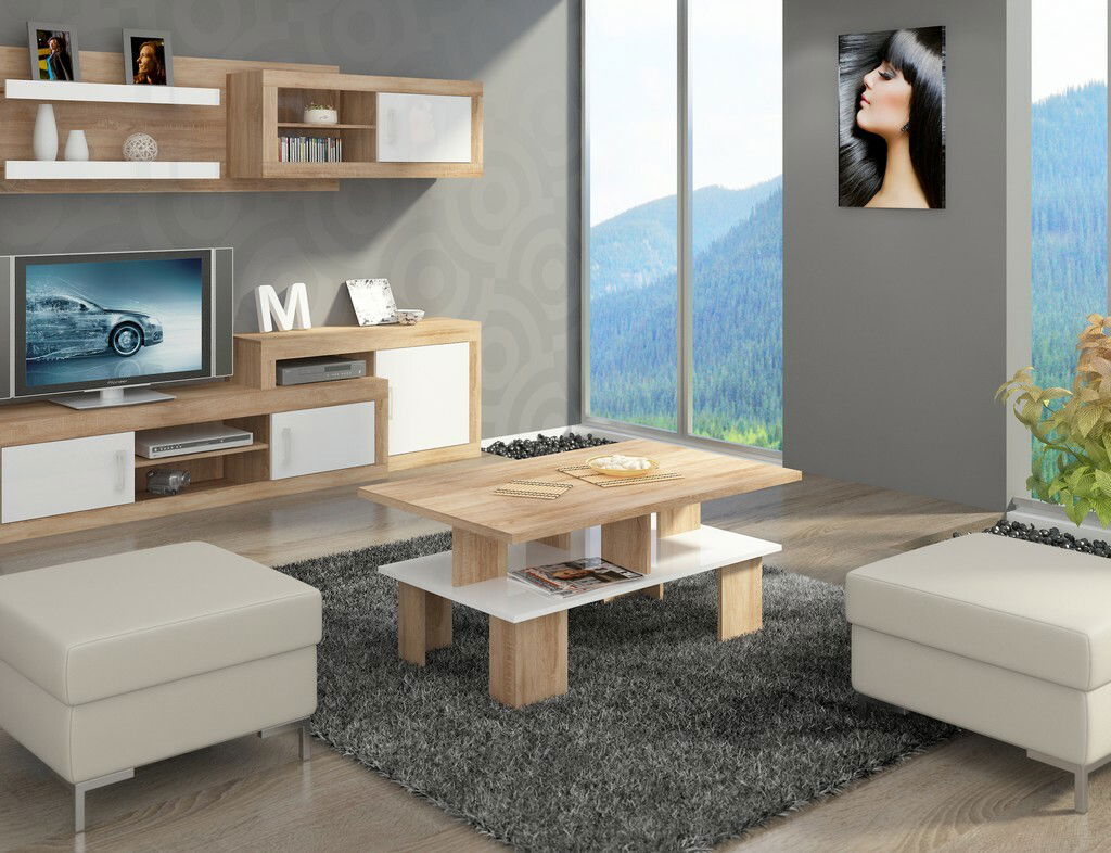 Konferenční stolek Sudbury 2 (sonoma světlá + lesk bílý)